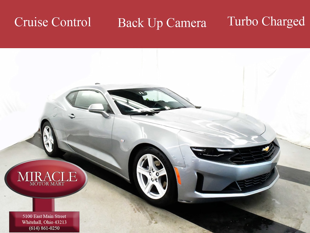 Racy yet refined, this 2023 Chevrolet Camaro turns even the most discerning heads. With a Turbocharged Gas I4 2.0L/122 engine powering this Automatic transmission, you'll marvel at this unique synergy between the forces of mother nature and the laws of physics. It's outfitted with the following options: WHEELS, 18" (45.7 CM) SILVER-PAINTED ALUMINUM (STD), TRANSMISSION, 8-SPEED, SUNROOF, POWER, SHARKSKIN METALLIC, SEATS, CLOTH FRONT SPORT BUCKET (STD), REMOTE VEHICLE STARTER SYSTEM, REAR AXLE, 3.27 RATIO, PADDLE-SHIFT MANUAL CONTROLS, LICENSE PLATE BRACKET, FRONT, and JET BLACK, SEAT TRIM . Visit Miracle Motor Mart at 5100 E. Main St., Columbus, OH 43213 today.