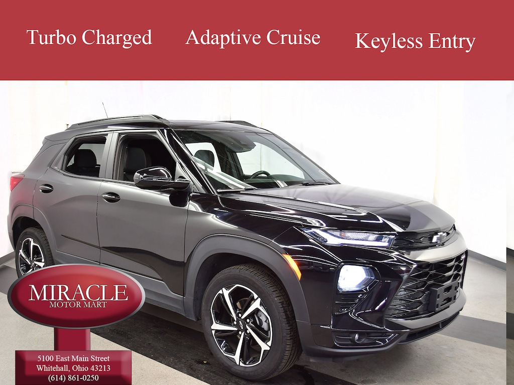 Solid and stately, this 2023 Chevrolet Trailblazer represents a faultless convergence of unparalleled power and beauty. With a Gas I3 1.3L/ engine powering this Automatic transmission, you will delight in the thrilling ease with which you commandeer the road. It is well equipped with the following options: WIRELESS CHARGING, VISORS, DRIVER AND FRONT PASSENGER ILLUMINATED VANITY MIRRORS, COVERED, SLIDING, USB CHARGING-ONLY PORTS one type-A and one type-C, charging only, located on rear of center console, TRANSMISSION, 9-SPEED AUTOMATIC (STD), TECHNOLOGY PACKAGE includes (IOS) Chevrolet Infotainment 3 Plus system, (U2L) HD Radio, SiriusXM with 360L, (UQA) Bose premium 7-speaker system, (MCR) memory card receptacle, (K4C) Wireless Charging, (KSG) Adaptive Cruise Control, (UVB) HD Rear Vision Camera, (UDD) enhanced, 4.2" diagonal multi-color display Driver Information Center and (T4L) LED headlamps, SENSOR, CABIN HUMIDITY, SEATS, FRONT BUCKET (STD), RS PREFERRED EQUIPMENT GROUP Includes Standard Equipment, POWER OUTLET, 120-VOLT located on rear of front console, and MOSAIC BLACK METALLIC . Visit Miracle Motor Mart at 5100 E. Main St., Columbus, OH 43213 today.