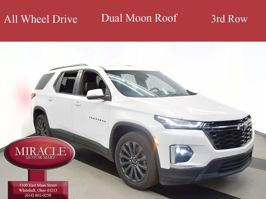 IRIDESCENT PEARL TRICOAT,NOT EQUIPPED WITH REAR PARK ASSIST SEE DEALER FOR DETAILS. Does not include later dealer retrofit. (Beginning October 17 2022 certain vehicles will be forced to include (060) Not Equipped with Rear Park Assist which removes Rear Park Assist. Does not include later dealer retrofit. See dealer for details or the window label for the features on a specific vehicle.),RS PREFERRED EQUIPMENT GROUP Includes Standard Equipment,TRANSMISSION 9-SPEED AUTOMATIC (STD),SEATS FRONT BUCKET (STD),JET BLACK/SPICE RED PERFORATED LEATHER-APPOINTED SEAT TRIM,AUDIO SYSTEM CHEVROLET INFOTAINMENT 3 PLUS SYSTEM with connected Navigation 8 diagonal HD color touchscreen AM/FM stereo Bluetooth audio streaming for 2 active devices Apple CarPlay and Android Auto capable enhanced voice recognition in-vehicle apps cloud connected personalization for select infotainment and vehicle settings. Subscription required for enhanced and connected services after trial period (STD),SUNROOF DUAL SKYSCAPE 2-PANEL POWER with tilt-sliding front and fixed rear includes power rear sunscreen,ENGINE 3.6L V6 SIDI VVT (310 hp [232.0 kW] @ 6800 rpm 266 lb-ft of torque [361 N-m] @ 2800 rpm) (STD),Cruise Control,Heated Mirrors,Power Mirror(s),Navigation System,Premium Sound System,MP3 Capability,Integrated Turn Signal Mirrors,Bluetooth Connection,Back-Up Camera,Auxiliary Audio Input,Power Folding Mirrors,Adaptive Cruise Control,Aerial View Display System,Front Collision Mitigation,Front Collision Warning,AM/FM Stereo,Navigation System,Satellite Radio,MP3 Capability,Heated Front Seat(s),Remote Trunk Release,Universal Garage Door Opener,Bluetooth Connection,Telematics,Remote Engine Start,Power Liftgate,Auxiliary Audio Input,Smart Device Integration,Requires Subscription,All Wheel Drive,Power Steering,ABS,4-Wheel Disc Brakes,Aluminum Wheels,Tires - Front Performance,Tires - Rear Performance,Conventional Spare Tire,Temporary Spare Tire,Automatic Highbeams,Automatic Headlights,Heated Mirrors,Power Mirror(s),Integrated Turn Signal Mirrors,Power Folding Mirrors,Privacy Glass,Intermittent Wipers,Intermittent Wipers,Remote Trunk Release,Power Liftgate,AM/FM Stereo,Navigation System,MP3 Capability,Bluetooth Connection,Telematics,Auxiliary Audio Input,Smart Device Integration,Requires Subscription,Premium Sound System,Satellite Radio,Requires Subscription,Satellite Radio,Requires Subscription,WiFi Hotspot,Bluetooth Connection,Smart Device Integration,Bucket Seats,3rd Row Seat,Bucket Seats,Leather Seats,Power Driver Seat,Power Passenger Seat,Driver Adjustable Lumbar,Passenger Adjustable Lumbar,Heated Front Seat(s),3rd Row Seat,Pass-Through Rear Seat,Floor Mats,Heated Steering Wheel,Adjustable Steering Wheel,Cruise Control,Steering Wheel Audio Controls,Power Windows,Power Door Locks,Keyless Entry,Power Door Locks,Remote Engine Start,Keyless Start,Universal Garage Door Opener,Cruise Control,Adaptive Cruise Control,Security System,Security System,Climate Control,Multi-Zone A/C,A/C,Rear A/C,Rear Defrost,Driver Vanity Mirror,Passenger Vanity Mirror,Driver Illuminated Vanity Mirror,Passenger Illuminated Visor Mirror,Front Reading Lamps,Rear Reading Lamps,Traction Control,Stability Control,Daytime Running Lights,Driver Air Bag,Passenger Air Bag,Front Side Air Bag,Front Head Air Bag,Rear Head Air Bag,Passenger Air Bag Sensor,Telematics,Requires Subscription,Auto-Dimming Rearview Mirror,Back-Up Camera,Aerial View Display System,Back-Up Camera,Aerial View Display System,Blind Spot Monitor,Lane Departure Warning,Lane Keeping Assist,Front Collision Warning,Cross-Traffic Alert,Front Collision Mitigation,Brake Assist,Front Collision Mitigation,Front Collision Warning,Child Safety Locks,Driver Restriction Features,Tire Pressure Monitor