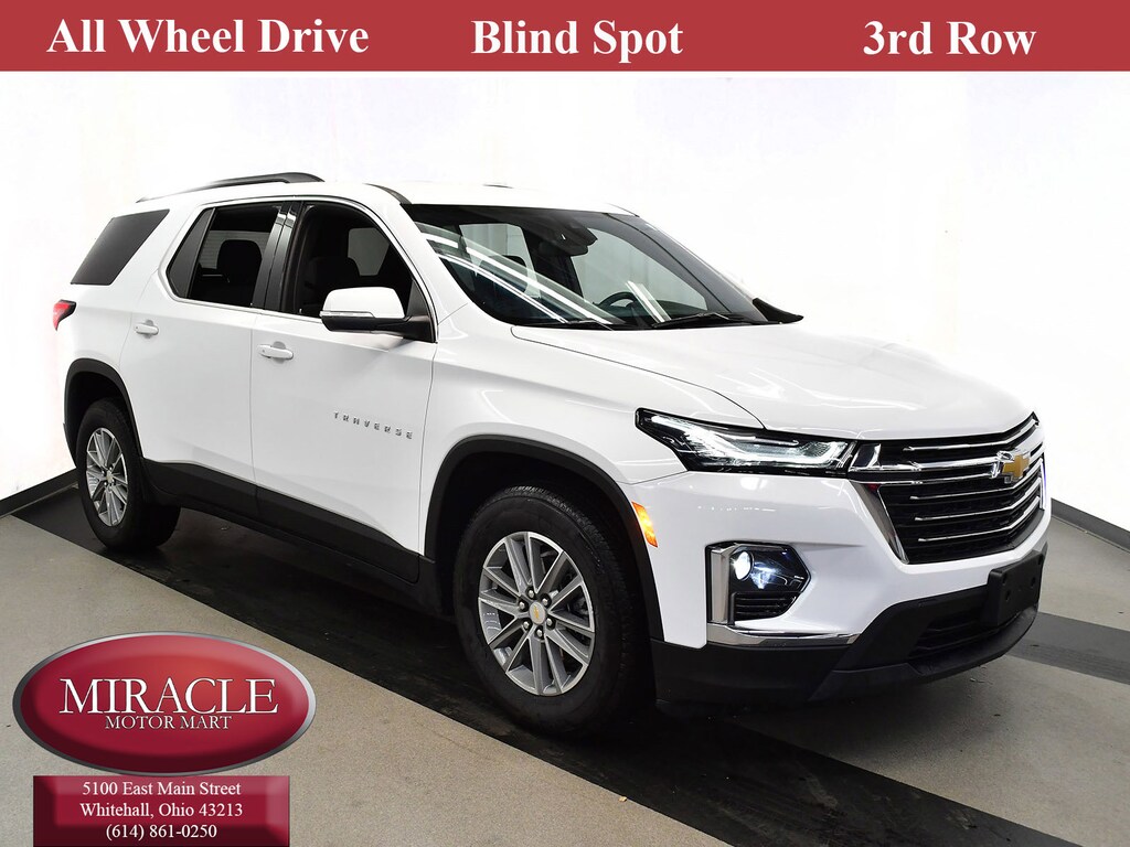WHEELS 18-INCH (45.7 CM) BRIGHT SILVER-PAINTED ALUMINUM (STD),LT CLOTH PREFERRED EQUIPMENT GROUP Includes Standard Equipment,SUMMIT WHITE,TRANSMISSION 9-SPEED AUTOMATIC (STD),SEATING 7-PASSENGER (2-2-3 SEATING CONFIGURATION) (STD),JET BLACK PREMIUM CLOTH SEAT TRIM,SEATS FRONT BUCKET (STD),TIRES P255/65R18 ALL-SEASON BLACKWALL (STD),AUDIO SYSTEM CHEVROLET INFOTAINMENT 3 PLUS SYSTEM 8 diagonal HD color touchscreen AM/FM stereo Bluetooth audio streaming for 2 active devices Apple CarPlay and Android Auto capable voice recognition in-vehicle apps cloud connected personalization for select infotainment and vehicle settings. Subscription required for enhanced and connected services after trial period (STD),LICENSE PLATE FRONT MOUNTING PACKAGE (will be forced on orders with ship-to states that require a front license plate),ENGINE 3.6L V6 SIDI VVT (310 hp [232.0 kW] @ 6800 rpm 266 lb-ft of torque [361 N-m] @ 2800 rpm) (STD),AM/FM Stereo,MP3 Capability,Heated Front Seat(s),Remote Trunk Release,Universal Garage Door Opener,Bluetooth Connection,Remote Engine Start,Power Liftgate,Auxiliary Audio Input,Lane Departure Warning,Lane Keeping Assist,Front Collision Mitigation,Front Collision Warning,Automatic Highbeams,All Wheel Drive,Power Steering,ABS,4-Wheel Disc Brakes,Aluminum Wheels,Tires - Front All-Season,Tires - Rear All-Season,Conventional Spare Tire,Temporary Spare Tire,Automatic Highbeams,Automatic Headlights,Heated Mirrors,Power Mirror(s),Integrated Turn Signal Mirrors,Privacy Glass,Intermittent Wipers,Intermittent Wipers,Remote Trunk Release,Power Liftgate,AM/FM Stereo,MP3 Capability,Bluetooth Connection,Auxiliary Audio Input,Smart Device Integration,Satellite Radio,Requires Subscription,Satellite Radio,Requires Subscription,WiFi Hotspot,Bluetooth Connection,Smart Device Integration,Bucket Seats,3rd Row Seat,Bucket Seats,Cloth Seats,Power Driver Seat,Driver Adjustable Lumbar,Heated Front Seat(s),3rd Row Seat,Pass-Through Rear Seat,Floor Mats,Adjustable Steering Wheel,Cruise Control,Steering Wheel Audio Controls,Power Windows,Power Door Locks,Keyless Entry,Power Door Locks,Remote Engine Start,Keyless Start,Universal Garage Door Opener,Cruise Control,Security System,Security System,Climate Control,Multi-Zone A/C,A/C,Rear A/C,Rear Defrost,Driver Vanity Mirror,Passenger Vanity Mirror,Driver Illuminated Vanity Mirror,Passenger Illuminated Visor Mirror,Front Reading Lamps,Rear Reading Lamps,Traction Control,Stability Control,Daytime Running Lights,Driver Air Bag,Passenger Air Bag,Front Side Air Bag,Front Head Air Bag,Rear Head Air Bag,Passenger Air Bag Sensor,Telematics,Requires Subscription,Back-Up Camera,Rear Parking Aid,Blind Spot Monitor,Lane Departure Warning,Lane Keeping Assist,Front Collision Warning,Front Collision Mitigation,Front Collision Warning,Cross-Traffic Alert,Front Collision Mitigation,Child Safety Locks,Driver Restriction Features,Tire Pressure Monitor